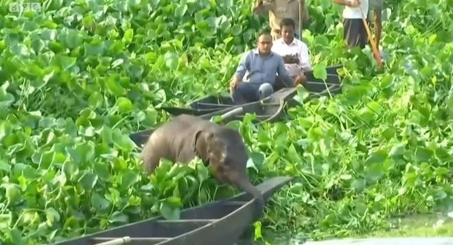 Heartwarming Video of a Cheering Crowd Rescuing a Lost Elephant Calf from Drowning